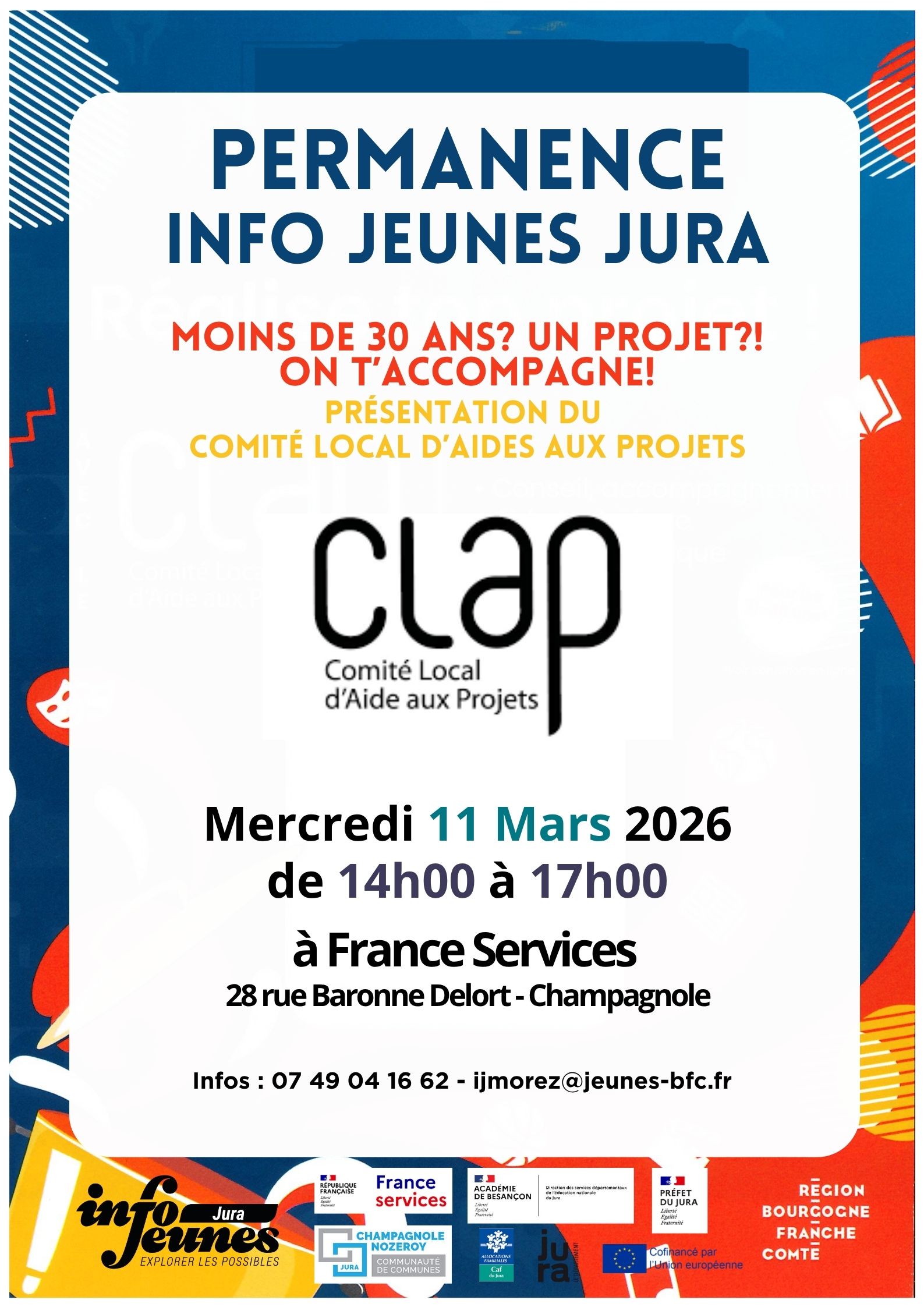 Rendez-vous mercredi 11 mars 2026, de 14h à 17h, à France services, 28 rue Baronne Delort à Champagnole.